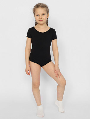 Купальник гимнастический с длинным рукавом. Вырез горловины и проймы ножек окантованы бейкой из основного полотна.