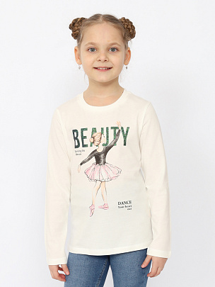 Джемпер для девочки из интерлока. Рукава присборены по окату и низу. Перед декорирован принтом.