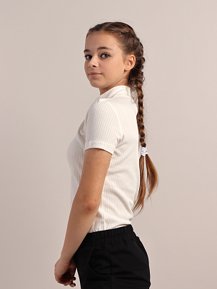Водолазка из интерлока с разборой(лапша), с короткими рукавами и воротником-стойкой.